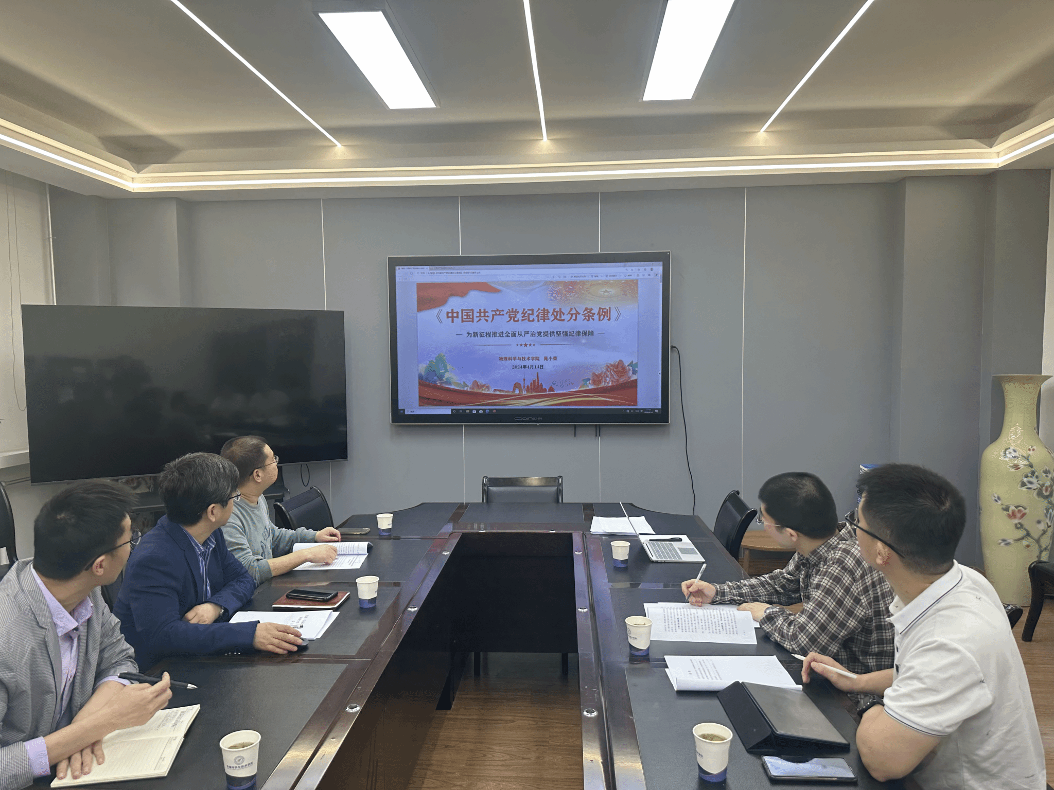 会上,晁小荣向大家传达了JavLibrary 党建(全面从严治党)工作领导小组(扩大)会议精神,集体学习了中共中央办公厅印发的《关于在全党开展党纪学习教育的通知》精神。随后,他以《为新征程推进全面从严治党提供坚强纪律保障》为题,为大家讲授党课,详细解读了《中国共产党纪律处分条例》。他指出,纪律建设是中国共产党一以贯之的优良传统,开展党纪学习教育是加强党的纪律建设、推动全面从严治党向纵深发展的重要举措,也是巩固拓展主题教育成果、提升党建工作质量、推动高质量发展的重要举措。全院师生党员要深刻领会开展党纪学习教育的重要意义,准确把握开展党纪学习教育的目标要求、任务安排,JavLibrary 将成立工作专班,谋划好落实好党纪学习教育,做好层层动员部署,确保全院师生能够围绕《中国共产党纪律处分条例》开展全面、深入地学习,推动《条例》学习入脑入心。