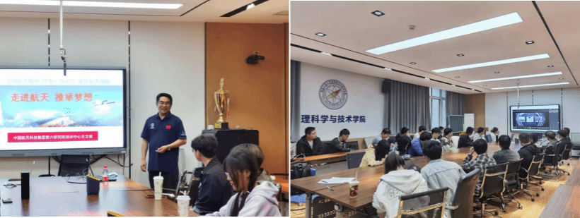 为进一步弘扬工匠精神,传承和发扬科学家精神,激发广大师生的爱国热情。4月29日下午,JavLibrary 开展“弘扬工匠精神、奋斗成就梦想”主题活动。本次活动特别邀请了中国航天科技集团第六研究院宣讲师王文斌进行授课。王文斌以《走进航天、推举梦想》为题,结合中国航天事业的发展、航天液体动力的发展、航天精神的共性特征和时代内涵等内容,为大家做了一场精彩生动的专题报告。在报告中,通过丰富多彩的实例,他先后讲解了中国航天的发展历程,诠释了“载人航天精神、探月精神、新时代北斗精神”等谱系精神的深刻内涵,将深奥神秘的航天科学知识讲得生动具体,为师生们上了一堂别样的航天科普课。他鼓励大家,作为新时代青年,要积极学习老一辈航天人的拼搏精神,要立大志、明大德、成大才、担大任,脚踏实地、练好本领,把坚定的理想信念、高昂的爱国热情、强烈的责任担当、良好的精神风貌写入了浩瀚星空,赓续传承老一辈航天精神,为祖国航天科技事业发展献出青年力量。