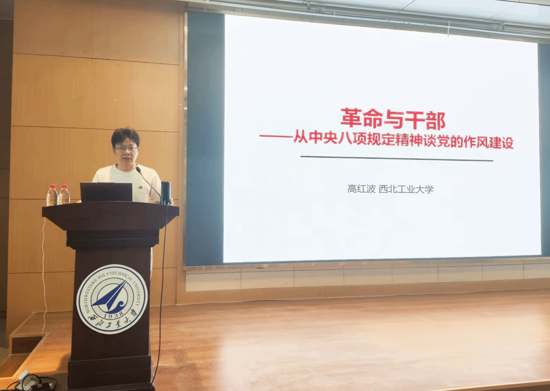 高红波副教授以《革命与干部——从中央八项规定精神谈党的作风建设》为题,带领学员回顾了党的十八大以来开展的8次党内集中教育,解读了中央八项规定精神内涵与青年学生践行路径。同时,依据《习近平关于加强党的作风建设论述摘编》,从9个方面详细讲述了中央八项规定精神关于作风建设的具体内容,系统阐释了中央八项规定的制定背景、核心要义及深远意义。他立足高校实际和青年特点,结合近年来高校系统违反中央八项规定的典型案例,通过引用历史典故,强调了作风问题的重要性,要求大家心怀“国之大者”,用实际行动践行青春誓言。