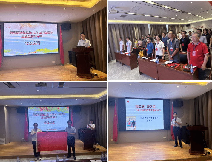 党委书记牟蕾代表培训班全体学员接旗。最后,梁胜文教授讲授了《知之深 爱之切——学习习近平在正定的岁月》专题党课,梁教授的讲解思想深邃、深入浅出、案例丰富,具有很强的理论性和指导性。全体学员跟随梁教授的讲解,追寻习近平总书记正定足迹,探寻习近平总书记施政思想的起源和初心足迹,使全体党员进一步深化了对习近平新时代中国特色社会主义思想丰富内涵及其形成脉络的认识。