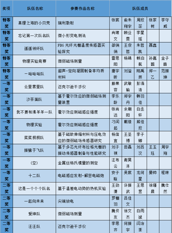 本次竞赛共评选出特等奖5项、一等奖8项和二等奖若干。获奖名单如下: