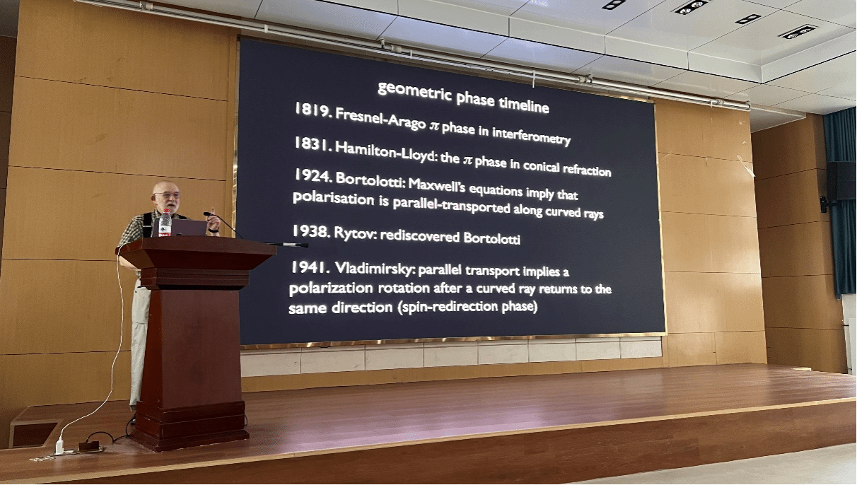 9月9日和9月11日上午,Berry教授分别以“Geometric phases old and new”和“Quantum trajectories, quantum potential, superoscillations: Madelung, de Broglie, Newton”为题作了两场学术报告,向大家介绍了几何相位两个世纪以来的发展史和量子轨迹、量子势、超振荡中的相位奇点、相位梯度、能流等数学和物理问题。9月11日晚,Berry教授与JavLibrary