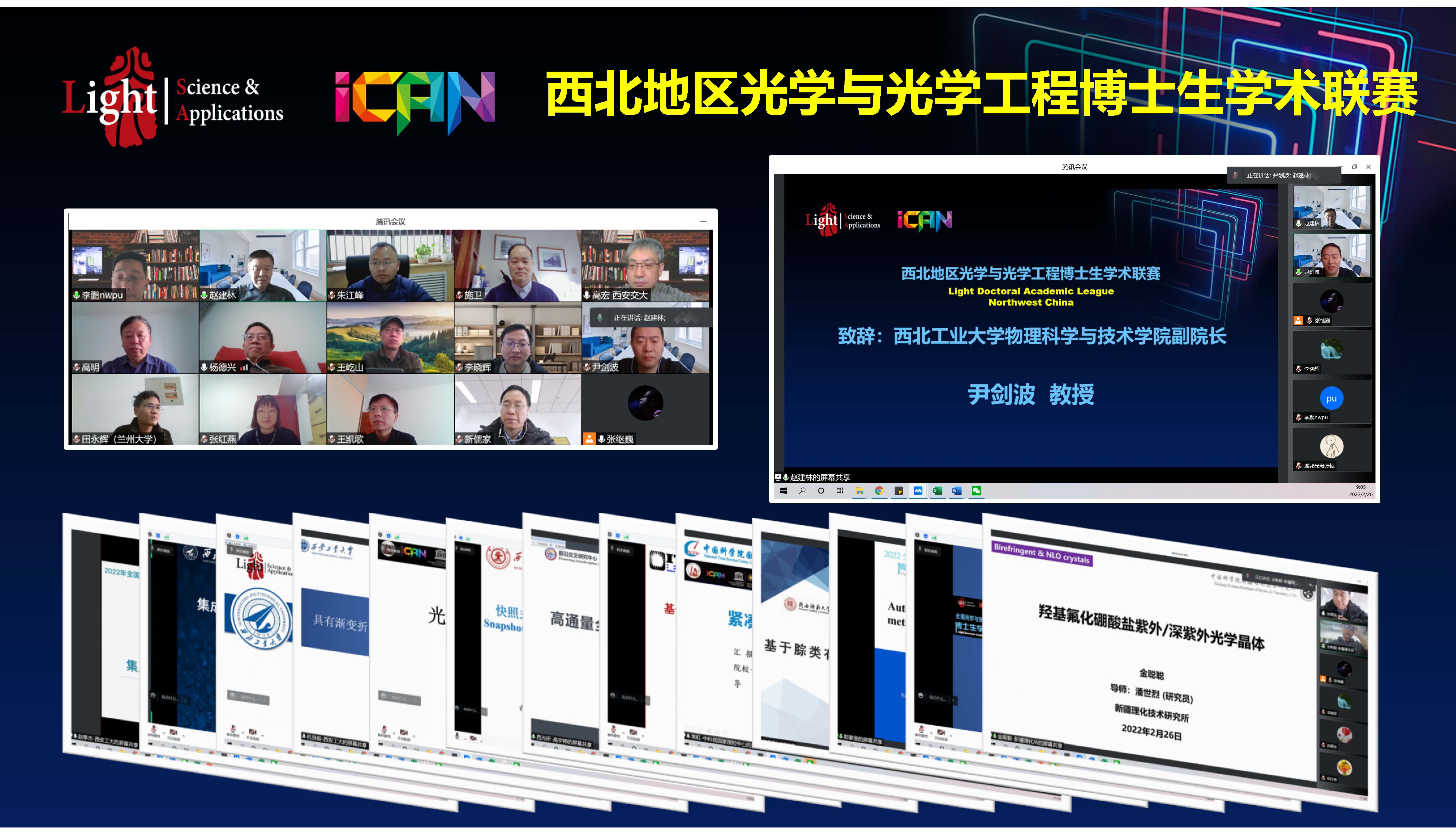 这是西北地区在去年成功举办的基础上,第二次组织光学和光学工程及相关学科博士生学术竞赛。在赛事筹备期间建立了由西北地区26名光学领域知名专家和青年学者组成的竞赛委员会。赛前对赛事进行了积极宣传和材料初审,最后共有来自11所高校和院所的29名博士研究生入围2月26日决赛。决赛过程全天在线进行,采取选手在线报告、评委查看选手申报材料、提问、现场无记名打分等方式。比赛通过腾讯会议系统进行了直播。