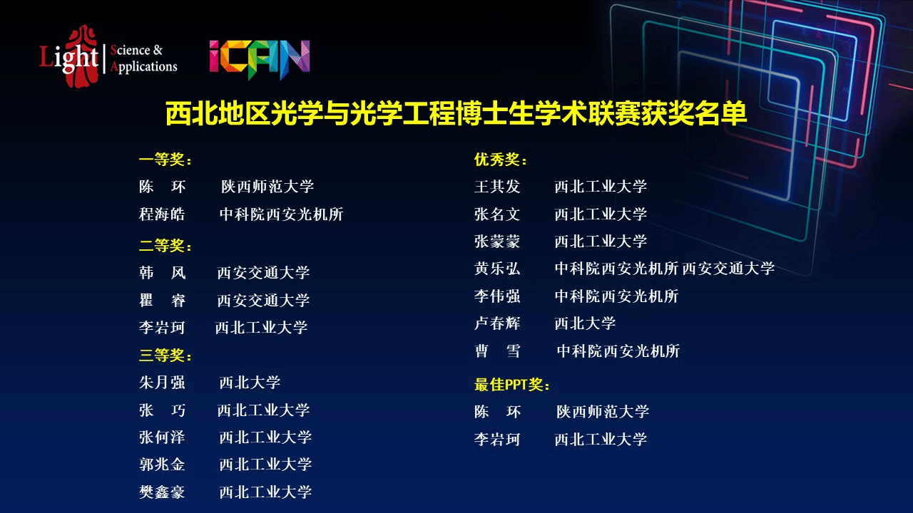 本次学术竞赛活动不仅为西北地区从事光学与光学工程领域研究的博士生们提供了展现自己最新科研成果的机会,也为来自不同单位和方向的老中青学者间相互交流、以及年轻一代从事光学与光学工程领域研究的博士生们搭建助飞的平台。