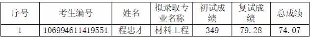 考生朱定强,考生编号106994611212756,主动自愿放弃JavLibrary 材料工程的拟录取资格,经JavLibrary 研究生招生工作小组审核通过,现根据成绩依次候补录名单公示如下: