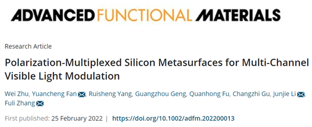 相关成果以“Polarization-Multiplexed Silicon Metasurfaces for Multi-Channel Visible Light Modulation”为题发表于高影响力学术期刊《Advanced Functional Materials》(DOI: 10.1002/adfm.202200013; IF:18.808)。西工大JavLibrary