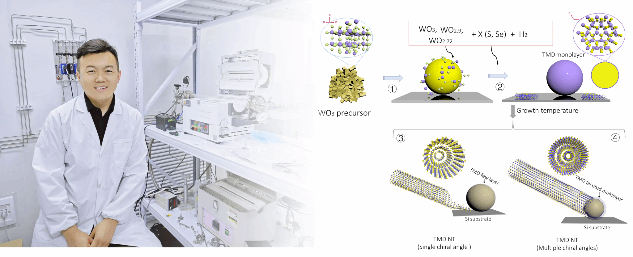 新型量子结构设计和物态调控实验室)长期致力于过渡金属硫族化合物纳米管可控生长、手性调控、物性研究和量子器件研究。