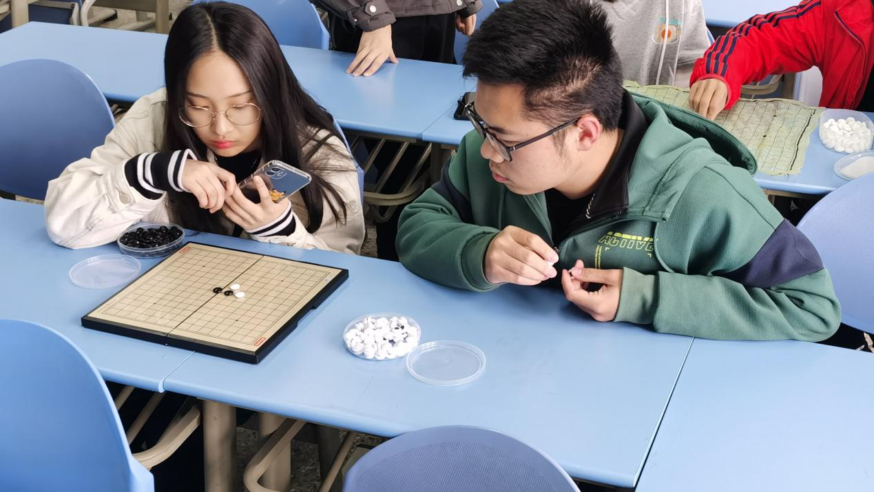 比赛共设五子棋、围棋、中国象棋、国际象棋、中国跳棋、军棋、三国杀、狼人杀等八个项目,共有35位同学报名参赛。参赛选手们通过线上线下相结合的方式进行比赛,聚精会神地沉浸在赛局中。暂时没有比赛的同学则在一旁安静地观看,或准备其他项目。