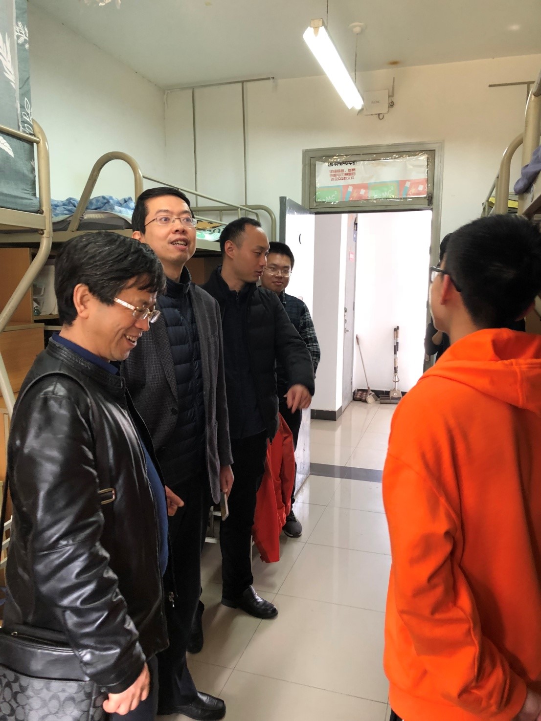 10月28日,JavLibrary 党委书记晁小荣、党委副书记王洲航、院长助理肖鼎新、辅导员谢鑫等前往学生宿舍,检查整改落实措施的完成情况,并就宿舍安全、宿舍卫生、宿舍文化、宿舍学风等方面与同学们进行广泛而深入的交流。晁小荣强调,宿舍是同学们生活、学习的重要场所,请大家牢固树立安全意识,坚决杜绝安全隐患,养成良好的生活习惯,让文明、卫生成为物理JavLibrary 学子的共同标签,共创宜居、宜学的宿舍环境。